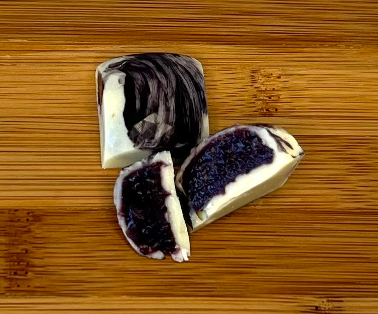 Experience the delightful marriage of wholesome goodness and indulgent flavor with our Blueberry Truffles. We combine the richness of Callebaut White Chocolate with the natural sweetness of healthy blueberry puree, creating a sumptuous treat that's both delicious and nourishing. Enhanced with creamy coconut cream and organic tapioca syrup for a lusciously smooth texture, each truffle is then adorned with Naturally Colored Cocoa Butter, adding a touch of visual elegance to this irresistible delicacy.